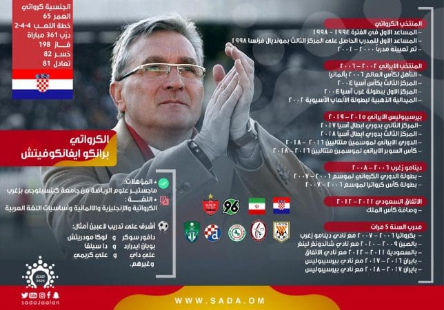 ومن المتوقع ان تشهد خلال هذا الأسبوع جلسة المفاوضات مع المدرب الكرواتي برانكو ايفانكوفيتش، وهو الأقرب حكم معرفته بالكرة الآسيوية مع الاندية والمنتخبات وفي كلاهما حقق إنجازات كبيرة.