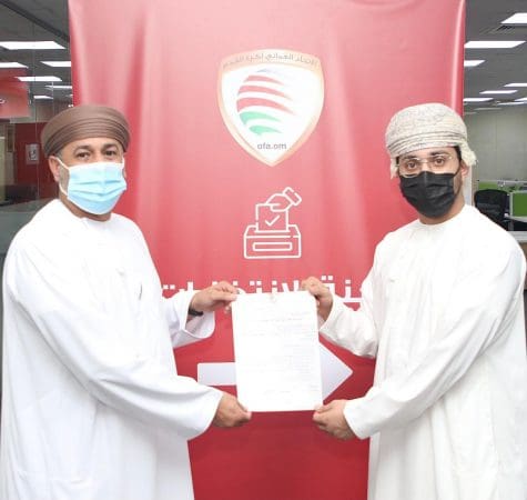 قدم محسن بن حمد المسروري النائب الأول لرئيس الاتحاد العماني لكرة القدم أوراق ترشحه لمنصب نائب رئيس الاتحاد العماني لكرة القدم للدورة الانتخابية ٢٠٢١-٢٠٢٥.
