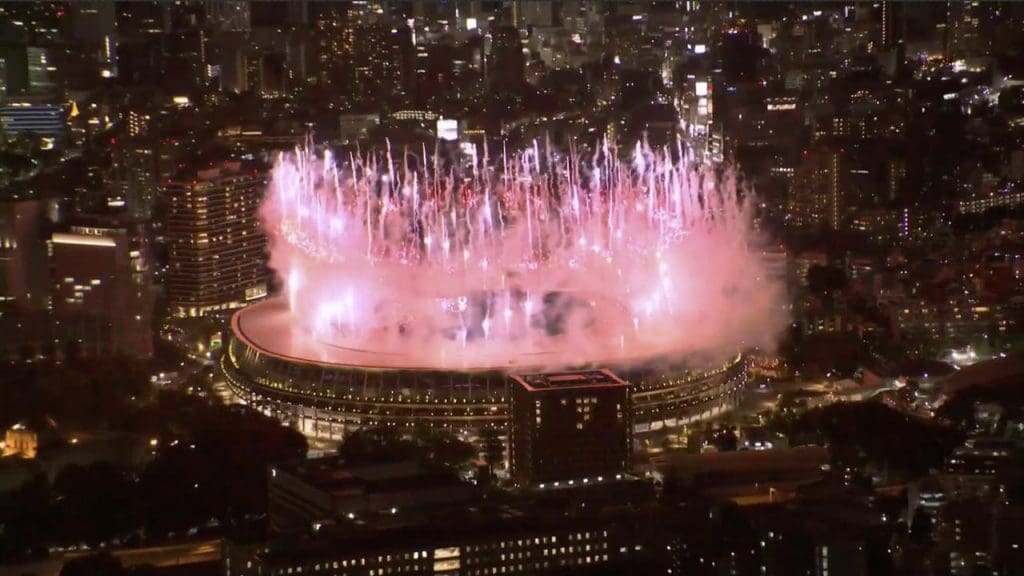 واحتشد المئات من اليابانيين خارج الملعب لمشاهدة الألعاب النارية والاستماع إلى الأصوات الصادرة من الداخل، في حين واجههم في المقابل عشرات الأشخاص المعارضين الذين طالبوا “بإلغاء الأولمبياد” واستخدام الأموال لمساعدة القطاع الصحي ووصل صداهم إلى داخل أسوار الملعب.
